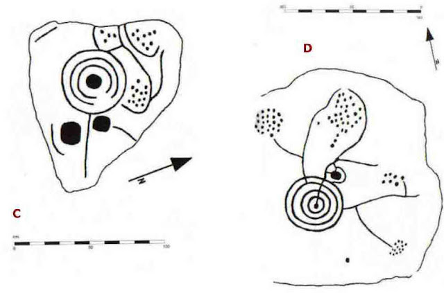 En el centro aproximado de este espacio hace el Lerez un meandro especialmente llamativo ; y en él está la estación rupestre de Laxe das Rodas, quizás el mejor exponente del arte rupestre circular. Importantes lugares megalíticos se situan en las inmediaciones de meandros de ríos, varios links con el blog de Manuel Calado nos llevan a ellos.