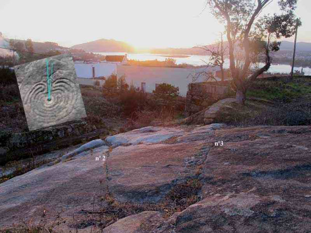 El día 21 de Diciembre estuve en Mogor para estudiar las lineas solsticiales en la Pedra dos Mouros, pero el lugar estaba en sombra desde mucho antes de la puesta del sol. En el ocaso equinocial el Laberinto está en sombra, pero no lo está la Pedra dos Mouros. Para Lombo da Costa , Mogor es el fiel en lo que respecta al equinocio; y la Atalaya de Viascón lo es en lo relativo al soslticio de invierno.